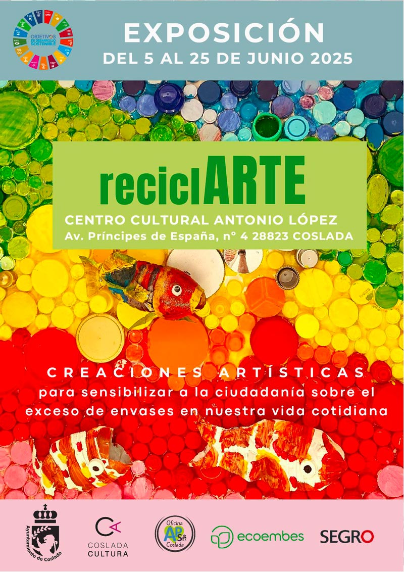El proyecto ReciclArte Coslada culmina con una exposición artística abierta al público, que podrá visitarse del 5 al 25 de junio en el Centro Cultural Antonio López. Las obras —entre ellas cuadros, esculturas e instalaciones— han sido creadas por el alumnado con la colaboración de estudiantes de la Facultad de Bellas Artes de la UCM, quienes realizaron sus prácticas del Máster en Arte Aplicado a la Educación.